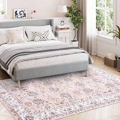 Garvee Alfombra Corredera Vintage de Pelo Corto, Rosa, 140x200cm, Lavable, Antideslizante, Repelente al Agua y Suciedad, Decoración Boho, para Sala, Dormitorio y Pasillo
