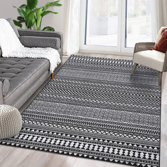 Garvee Alfombra Corredera Moderna Boho, Diseño Geométrico, Poliéster, Lavable y Antideslizante, Negro Profundo, 200x290cm, para Pasillo y Sala