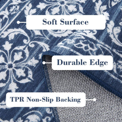 Garvee Alfombra Corredera Vintage Azul, Diseño Geométrico, Pelo Corto, Lavable y Antideslizante, 200x290cm, para Sala y Dormitorio