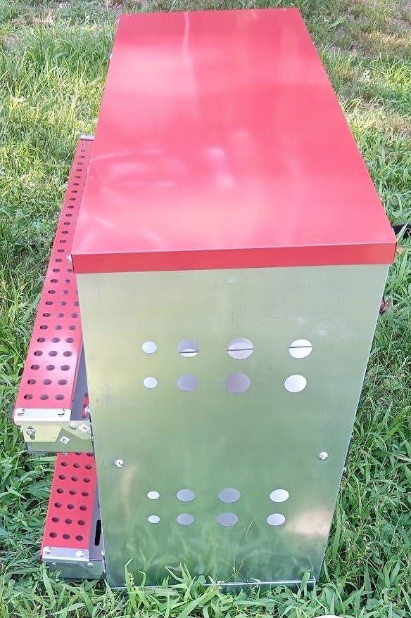Techos inclinados y rejillas desmontables para limpieza sencilla. Orificios de ventilación reducen humedad, mientras su superficie lisa resiste manchas y se lava con agua. Ideal para gallineros caseros.