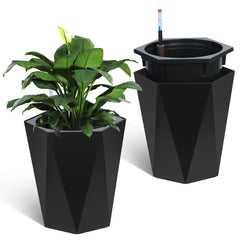 Garvee Macetas Diamante 57 cm Set 2 Autorriego Monitor Nivel Agua Plástico Resistente Ruedas Interior Exterior Negro