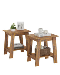 Garvee Mesa Auxiliar de Madera Juego de 2 Estantes Rústico Compacta Estable para Sala y Dormitorio 39 cm Diámetro Marrón