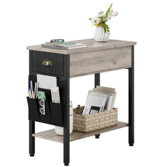 - Gran espacio de almacenamiento: La superficie de la mesa y los estantes inferiores de la mesa auxiliar ofrecen suficiente espacio para exhibir y almacenar. Un cajón con asa ofrece mucho espacio para guardar objetos personales u otras cosas que desee almacenar. La bolsa de tela colgante puede organizar revistas, cuadernos, controles remotos, teléfonos y adaptadores.
