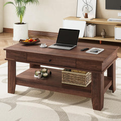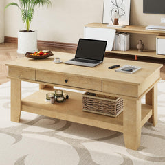 Garvee Mesa de Café Grande con Cajón 120 cm Madera Moderna para Salón Color Natural