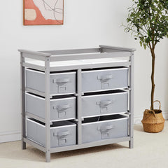 Garvee Mesa Cambiadora para Bebé con 6 Cajones, Barra de Seguridad, Almohadilla Impermeable, Madera Maciza, Ideal para Habitaciones Infantiles, 34x19x34, Color Fresco