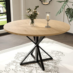 Garvee Mesa de Comedor Redonda para 4 Personas, 119 cm, Base Metálica Resistente, Madera de Roble, Diseño Seguro Sin Esquinas, Patas Antideslizantes, Fácil Montaje, Cocina y Sala