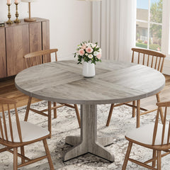 Garvee Mesa De Comedor Redonda 47in Para 4-6 Personas, MDF Robusto, Base Estable, Ajuste Nivelable, Gris, Cocina Y Salón