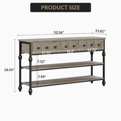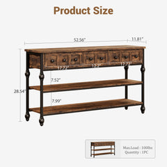 Garvee Mesa Consola Sofá 53 in con 3 Cajones y Estantes, Diseño Columna Romana, Metal Industrial y MDF, Resistente y Multifuncional, para Entrada y Sala