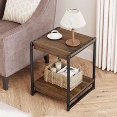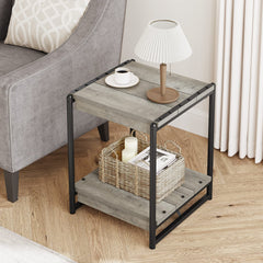 Garvee Mesa Lateral Industrial de Madera con Marco Metálico, 2 Estantes, Sala y Dormitorio, Vintage Gris, 50 × 45 × 61 cm