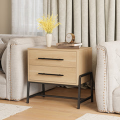 Garvee Mesa De Noche Rústica Con 2 Cajones, Madera Engranada, Patas De Metal Para Dormitorio Y Sala, Compacta, Resistente