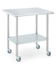 Garvee Mesa de Preparación de Acero Inoxidable 61 × 76 cm con Ruedas Giratorias y Estante Ajustable para Cocina Comercial y Exterior, Resistente y Versátil