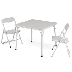 Garvee Conjunto Plegable Mesa y Sillas Niños, Metal Resistente, Asientos Tapizados, Beige, Para Comer y Jugar