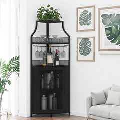 Garvee Mueble Esquinero para Vino con Estante Desmontable, 5 Niveles, Puerta de Granero, Soporte para Copas, 29 in, MDF Resistente, Diseño Industrial, Negro