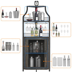 - Amplio espacio de almacenamiento: Con un diseño innovador, este armario de vino de esquina ofrece una capacidad de almacenamiento abundante, permitiéndole organizar ordenadamente una amplia variedad de artículos relacionados con el vino. Su diseño pensado mejora su espacio vital mientras ofrece soluciones prácticas para el almacenamiento de vino.