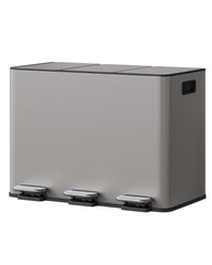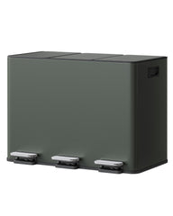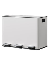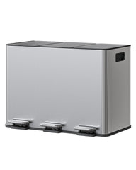 - 【Diseño triple para una separación de residuos sin esfuerzo】 Este sistema de separación de basura de alta calidad con triple compartimento de acero inoxidable cuenta con tres compartimentos independientes de 15 litros y tres pedales independientes. Separe fácilmente residuos generales, residuos orgánicos y reciclables: la solución perfecta para mantener el orden en cocinas modernas