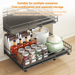 - Excelente calidad: este organizador de gabinete extraíble está hecho de acero al carbono de alta calidad con un recubrimiento exterior grueso y duradero, tiene una estructura de marco estable, es resistente al óxido y al desgaste, robusto y duradero, ideal para almacenamiento en cocina, baño y sala de estar.