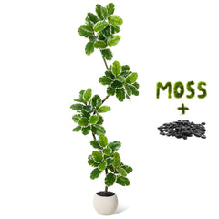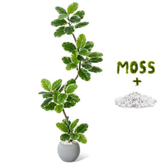 - 【Ficus Lira artificial con hojas de violín】Este ficus lyrata artificial de 150 cm (60 pulgadas) de altura cuenta con 47 hojas grandes con venas detalladas y variación natural de color. Incluye una maceta redonda moderna (22 cm de alto x 24 cm de diámetro) con relleno de cemento estable, cobertura decorativa de musgo y piedras negras, además de un diseño antivuelco para una estabilidad óptima.
