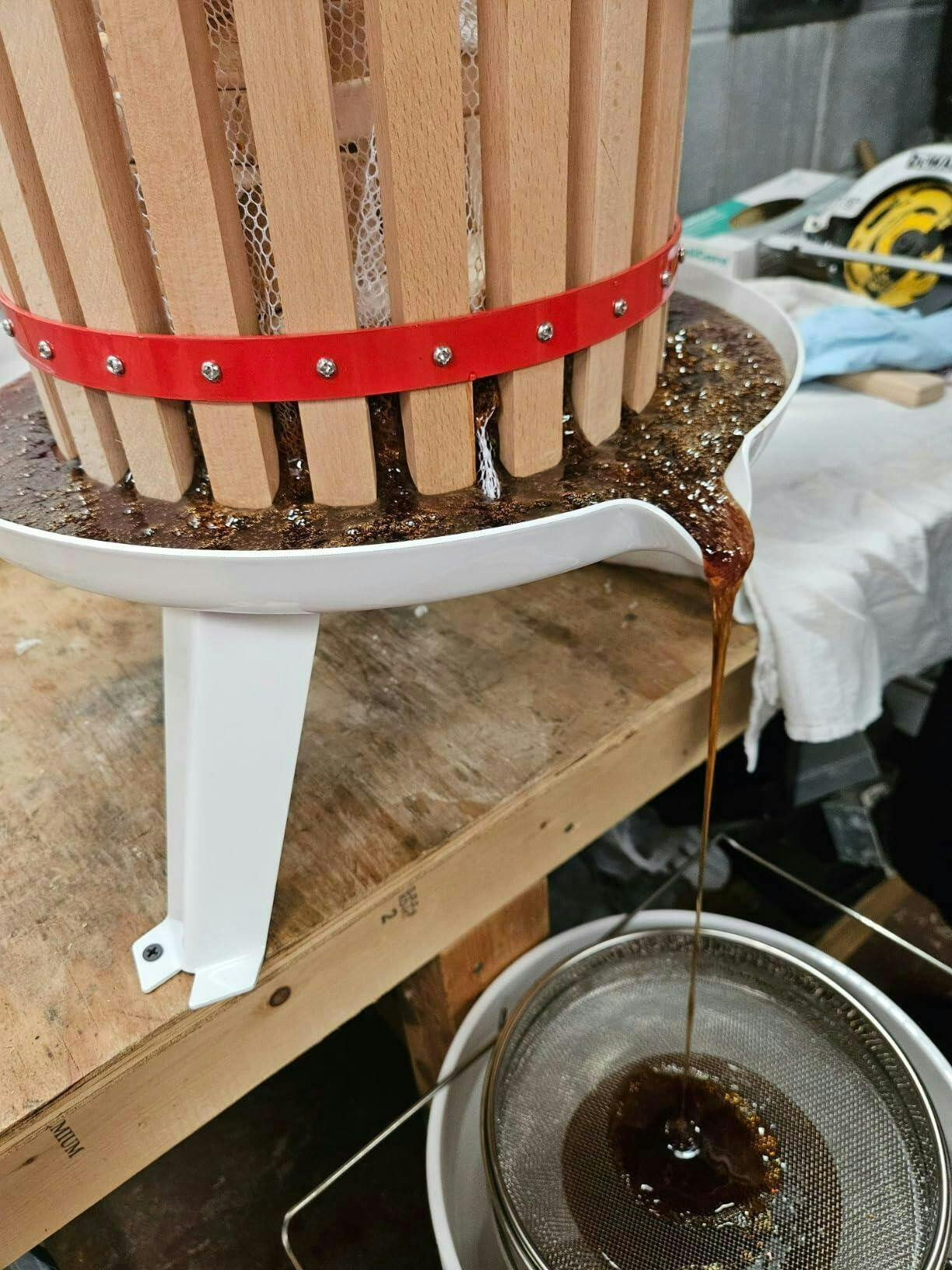 Placa de prensado reforzada con amplia superficie para extracción completa y eficiente del jugo. Aumenta tu productividad y consigue resultados superiores en elaboración de vino de frutas.