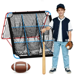 - Capacidad Multi-Deporte: Más que una simple red para béisbol o softbol, este entrenador también cuenta con un objetivo de lanzamiento de 9 agujeros en el reverso para ejercicios precisos de lanzamiento. Funciona bien para una variedad de actividades, incluyendo fútbol, voleibol, baloncesto y entrenamiento de golf.