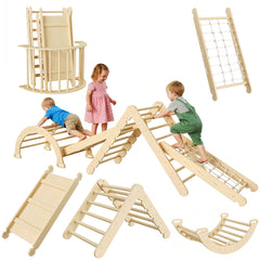 Garvee Set de Triángulo Pikler 8 en 1 - Juguete de Escalada Plegable para Bebés 1-3 Años - Madera Natural - Arco y Rampa - Gimnasio Interior