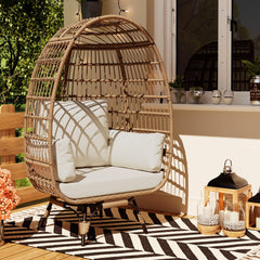 Garvee Silla Colgante Giratoria 360° Exterior - Sillón Lounge Huevo Grande, Marco de Acero, Mimbre Beige, Para Patio y Sala