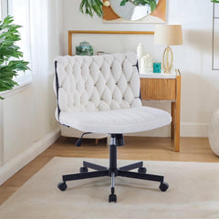 - Fuerte y resistente: Con una base metálica robusta que soporta hasta 300 libras, esta silla versátil es perfecta para tu tocador o como una cómoda silla de escritorio
