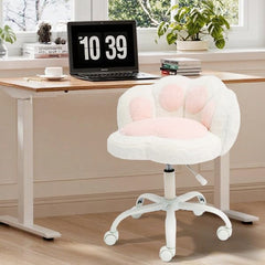 Garvee Silla de Tocador con Ruedas Giratoria 360°, Ajustable en Altura, Felpa Teddy, Respaldo de Patas de Gato, Nylon, Para Dormitorio y Oficina, Color Suave