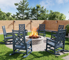 Garvee Conjunto de 6 Sillas Mecedoras Adirondack para Exterior, HDPE Resistente al Clima, Azul Marino, Diseño Ergonómico, Soporta 172 kg