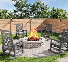 Garvee Juego De 4 Sillas Mecedoras Adirondack De Exterior HDPE Resistente Para Patio Y Jardín Textura Madera