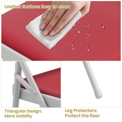 - 【Acolchado de cuero PU】Estas sillas plegables acolchadas están hechas de cuero PU resistente al desgaste y al agua, con asientos y respaldos acolchados de esponja, que son muy cómodos y fáciles de limpiar, lo que las hace perfectas para uso prolongado, ya sea que organices una fiesta o montes un espacio de oficina temporal.