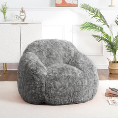 Garvee Sillón Puff de Piel Sintética para Adultos y Niños, Diseño Estructurado, Espuma Suave, Peluche PV, Resistente y Cómodo, Salón y Dormitorio, 94×96×65 cm, Gris