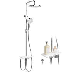 Garvee Sistema de Ducha Ajustable 98-130cm Acero Inoxidable 201 Cabezal 25cm + Regadera 3 Funciones Estante 27cm Fácil Instalación Hogares, Renovadores Baños Modernos Cromado y Blanco