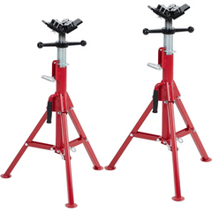 Diseño de cabeza en V para tuberías de 1/8 a 12 pulgadas. Altura ajustable de 28" a 52", asegurada con arandelas de seguridad para mantener estabilidad constante después del ajuste, adaptándose a proyectos variados.