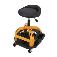 Garvee Taburete Rodante de Garaje Acero Goma Espuma Ajustable Asiento Acolchado Armazón Redondo Hogares, Talleres Garajes, Talleres Negro