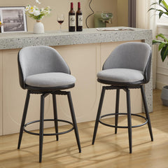 Garvee Taburetes de Bar Altos 66 cm Set de 2, Giratorios 360°, Respaldo Ergonómico, Metal y PU Cuero + Lino Beige, Cocina Moderna, Estables y Ajustables