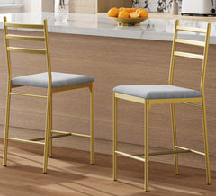 Garvee Taburetes De Barra 22.4 In Metal Con Respaldo Y Cojín Grueso PU Oro Para Cocina Y Restaurante