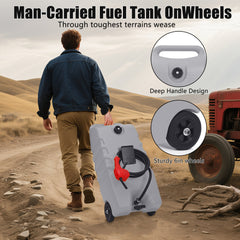 - Fácil para llevar: diseñado para la comodidad, nuestro tanque de combustible es altamente portátil y fácil de transportar. Equipado con dos ruedas resistentes de 6 pulgadas y un asa moldeada en la parte superior, el tanque portátil con bomba proporciona una maniobrabilidad sin esfuerzo sobre diversos terrenos. Ya sea para repostar embarcaciones pequeñas o transportar combustible a diferentes ubicaciones, nuestro tanque es un compañero fiable.