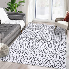 Garvee Alfombra Boho de Poliéster, 160x200cm, Pelo Corto, Lavable y Antideslizante, Blanco y Negro, para Sala y Oficina