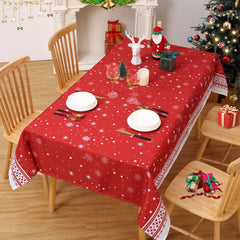 - Elegante mantel navideño festivo hecho de poliéster de alta calidad, resistente al agua, con un efecto bambú y diseño de copos de nieve.
