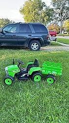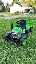 Garvee Tractor Eléctrico 12V, Remolque Extraíble, Luces LED y Bluetooth, 3-7 años, Jardín, Rojo