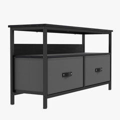 Cuenta con 2 cajones de tela y estantes adicionales, proporcionando mucho espacio para organizar tus elementos esenciales de entretenimiento.